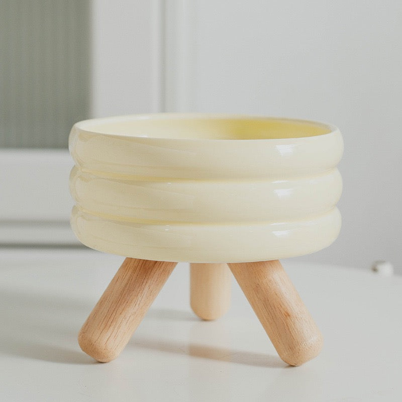 The separated Ceramic Twin Bowls have the wooden stand.